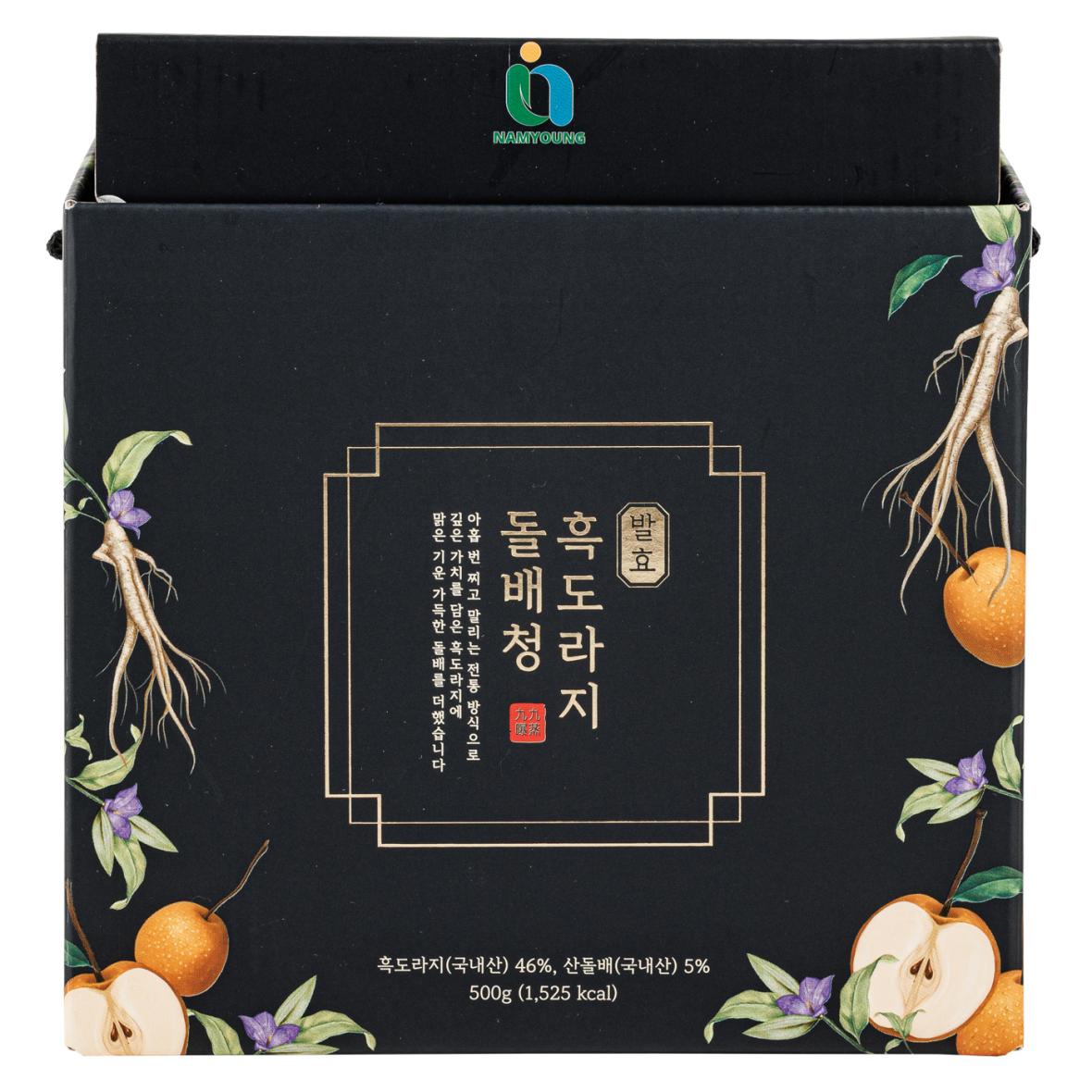 Black Balloon Flower & Wild Pear Syrup is a premium traditional Korean concentrate created by slowly brewing nine-steamed–nine-dried black balloon flower roots together with wild pears from pristine Muju. This time-honored method enriches natural saponins and deep herbal notes, while the wild pear adds bright fruit acidity and sweetness. Korean radish, ginger, grain syrup, and herbal ingredients such as licorice and onion peel complete the formula, delivering a layered flavor profile that is both soothing and refreshing.