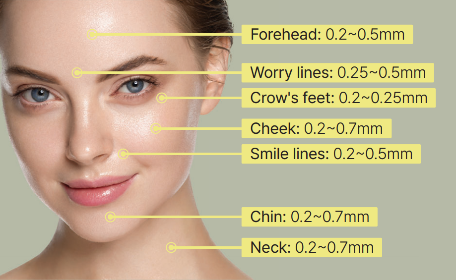 - The application depth must be adjusted according to the skin thickness and treatment area.